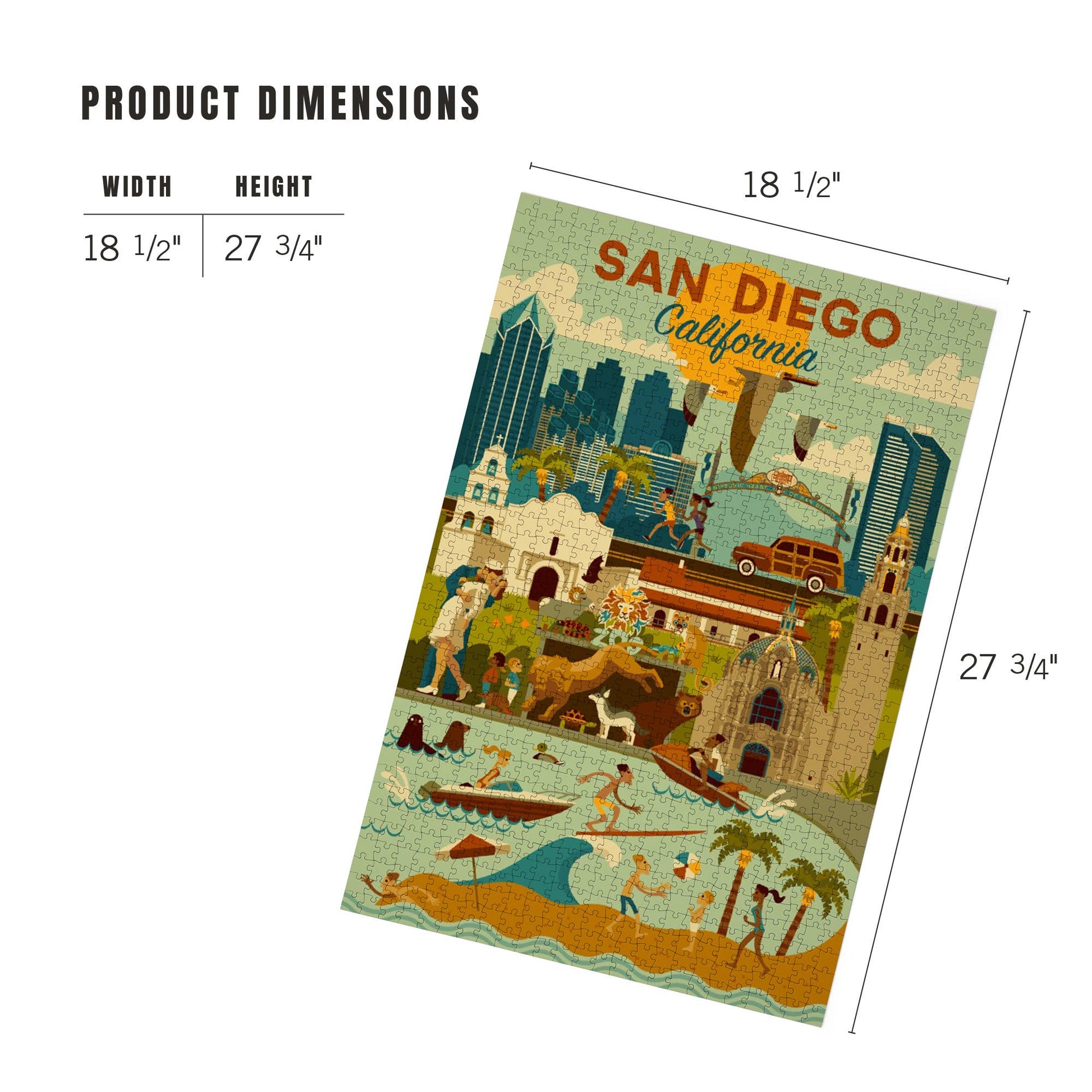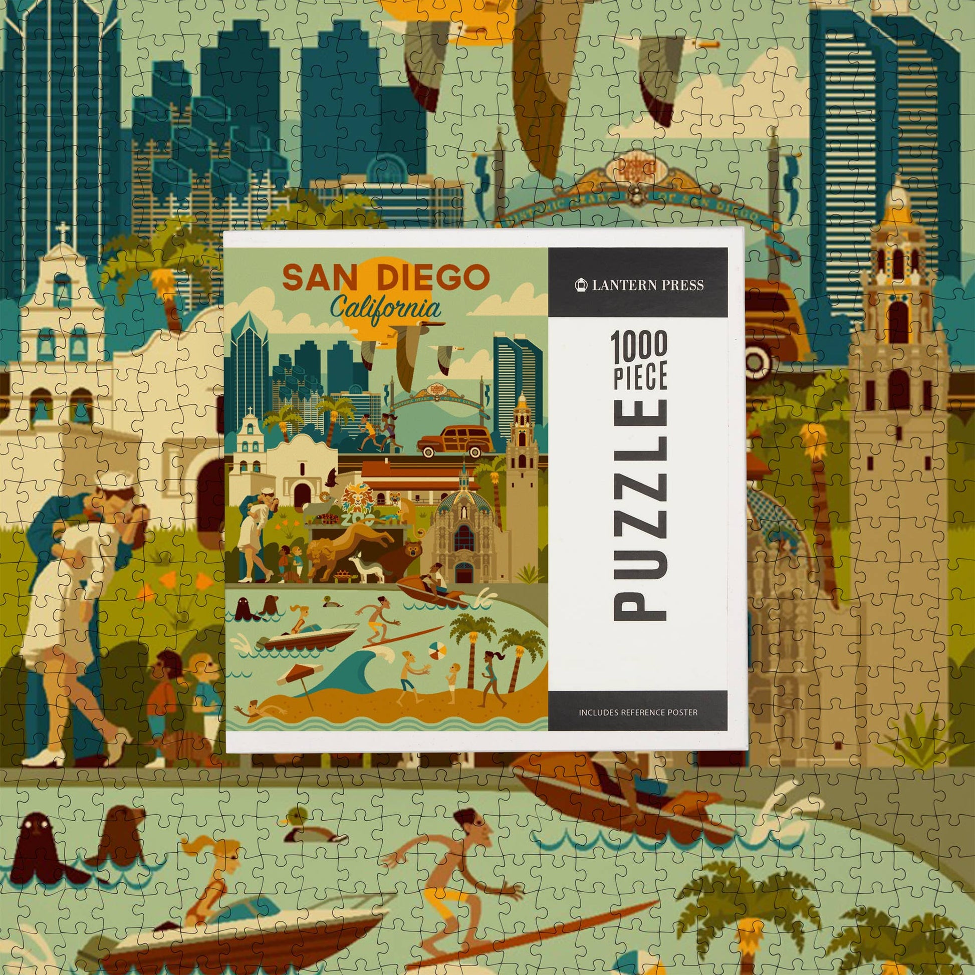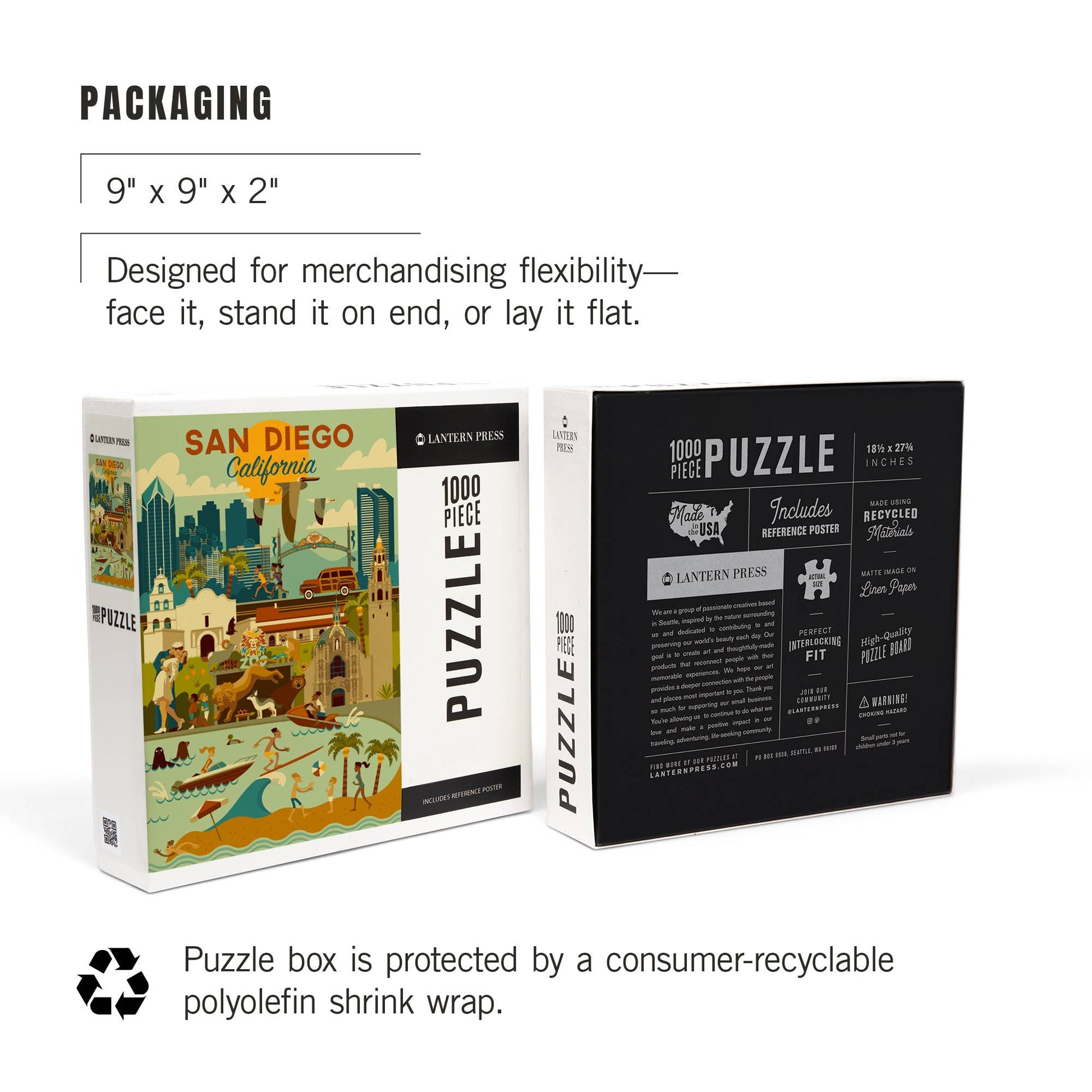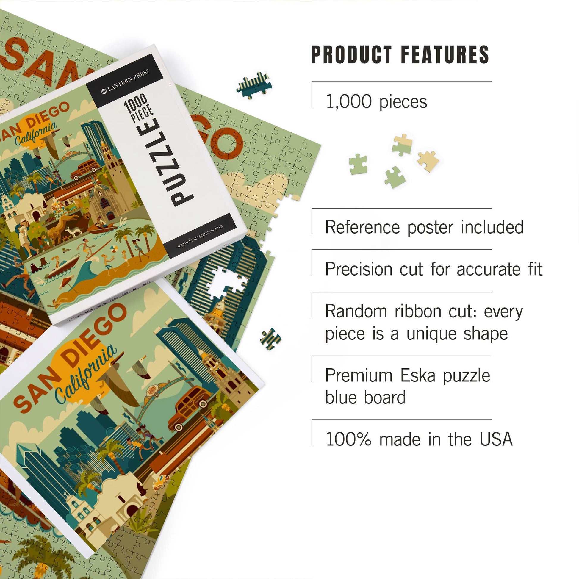 Piece together the vibrant spirit of San Diego with this stunning 1,000-piece puzzle from Lantern Press! Featuring bold geometric designs inspired by California's iconic coastal city, this brain-teasing adventure brings together art and geography in one satisfying package. Perfect for puzzle enthusiasts, travel lovers, or anyone craving a creative escape, it's the ideal way to celebrate your favorite destination—one colorful piece at a time. Get ready to puzzle and play your way to San Diego!