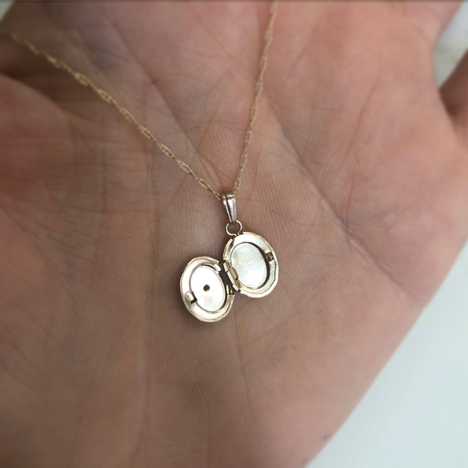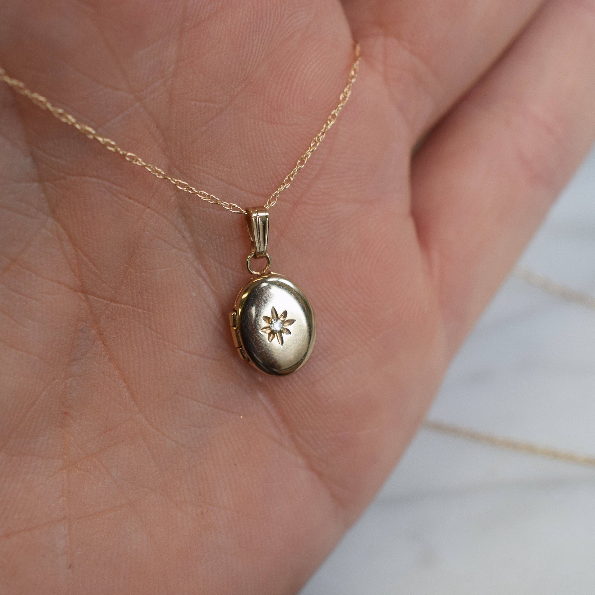 Dainty and minimalistic fully functioning 14kt solid gold locket with diamond detail is bound to become your favorite sentimental piece. You can place a photograph that is dear to your heart inside the locket, or you can engrave initials inside the locket. This solid gold heart locket makes for the perfect gift! Product Description: solid 14kt gold; 18'' solid 14kt gold chain; natural 1.2mm white diamond (VS/1 quality); locket measures 10x8mm