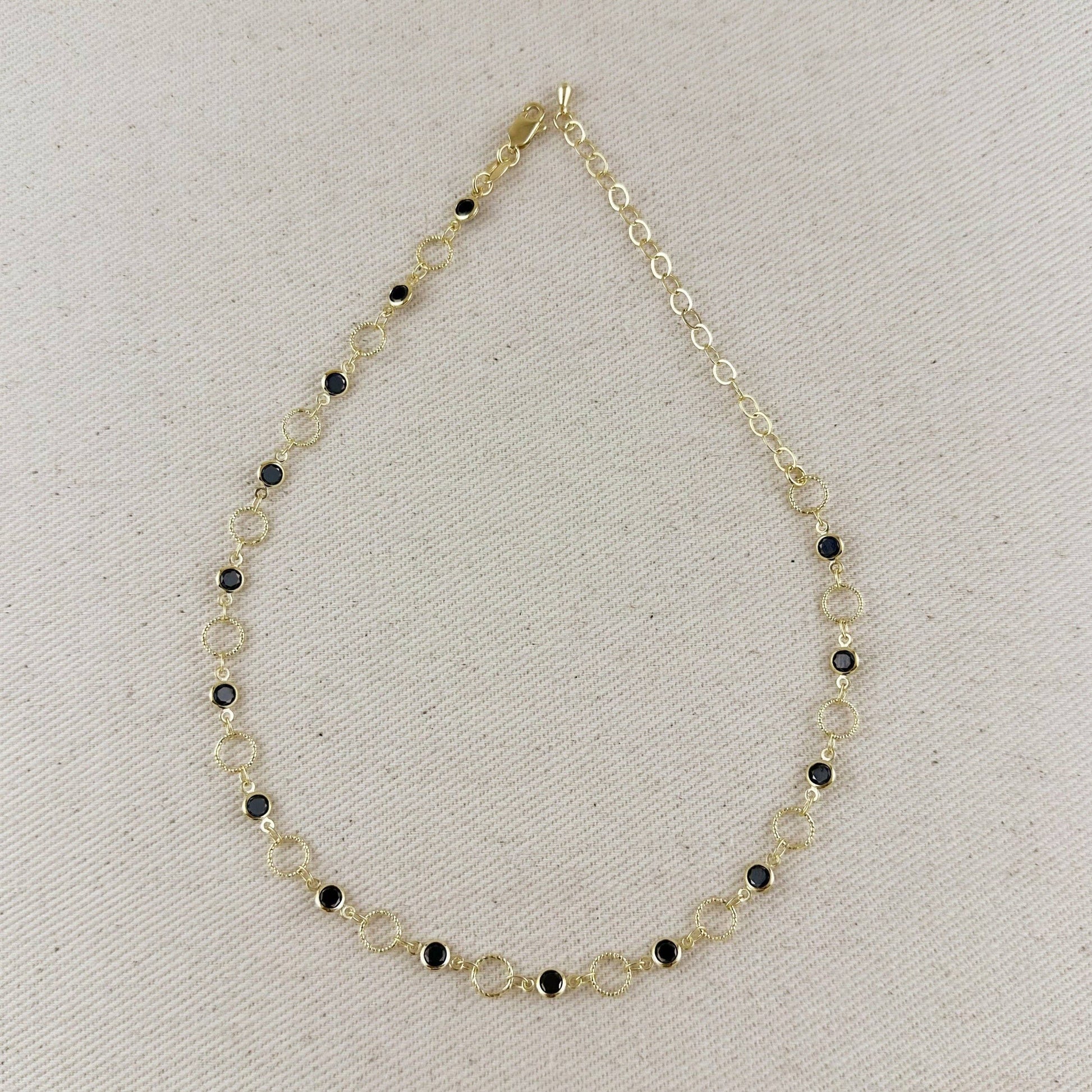 18k Gold Filled Black Bezel CZ & Circles Choker Necklace
