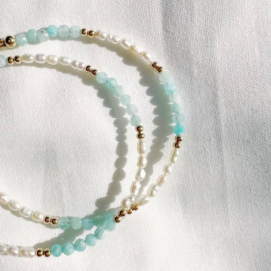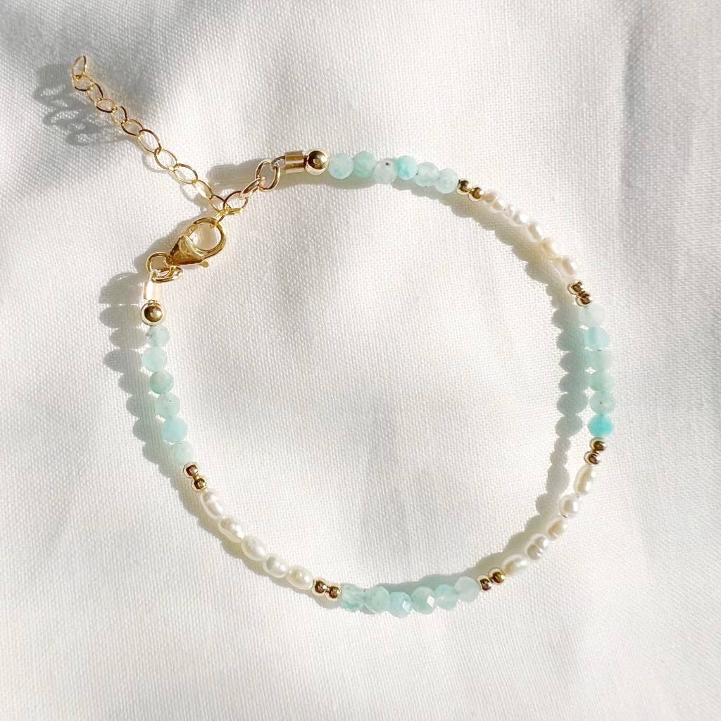 Amazonite Freshwater Pearl Beaded Gold Filled Bracelet