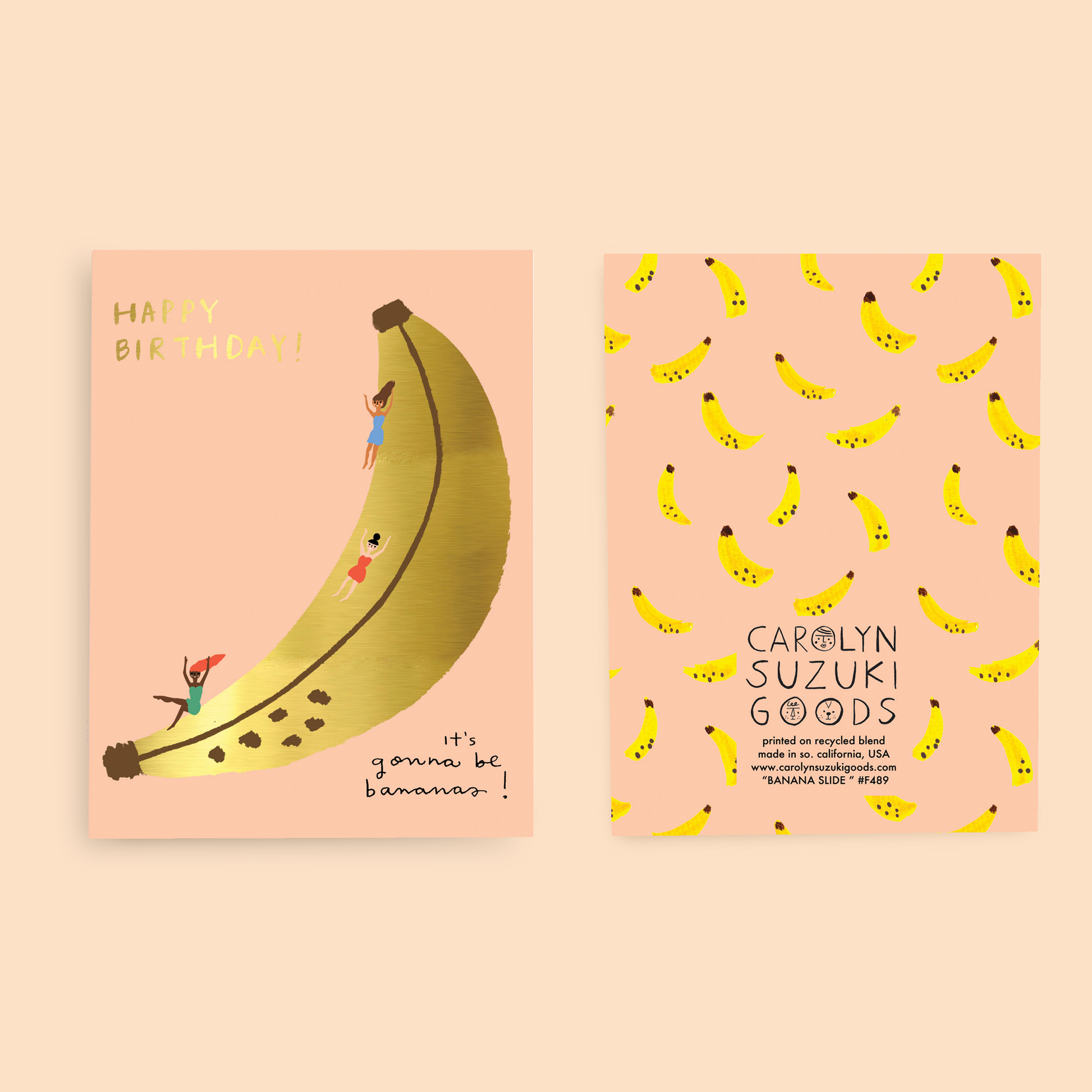 Birthday Card, blank inside. A2 Size - 4.25 by 5.5 inches with foil embellishments. Comes with a coordinated envelope and packaged in a clear sleeve. Lovingly designed by Carolyn Suzuki in Los Angeles, California. Printed on carbon neutral FSC certified paper in the United Kingdom.
