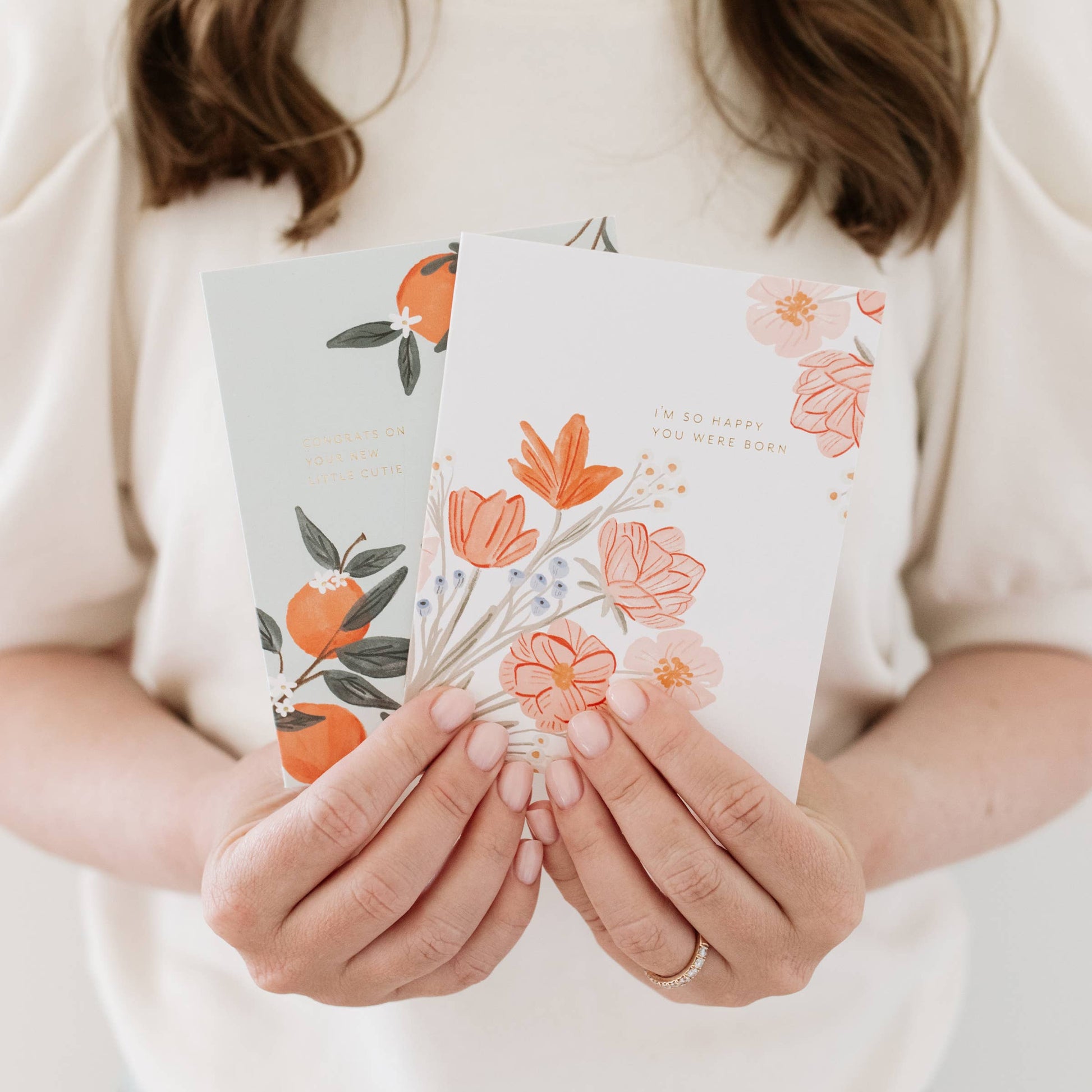 Celebrate someone special with a delightful floral bouquet illustration. Perfect for welcoming new life or celebrating a birthday. • A2 folded (4.25” x 5.5”) • Digital Print | Gold Metallic Foil • Blank interior • Includes coordinating envelope