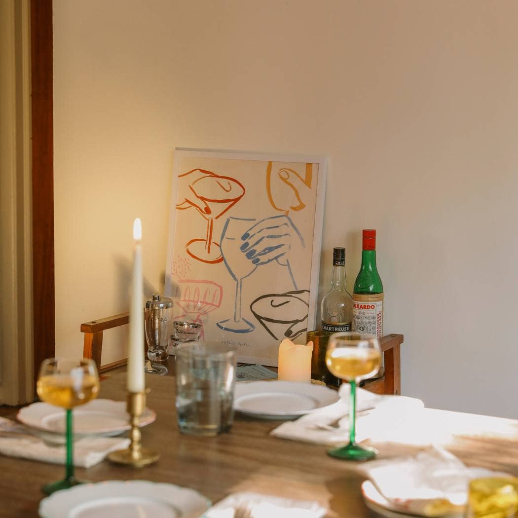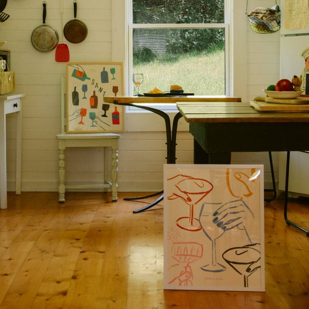 Elevate your bar cart or home décor with the "Cheers" Cocktail Print! This hand-painted art poster features a celebratory toast and it's the perfect way to add a touch of personality and festivity to any space!