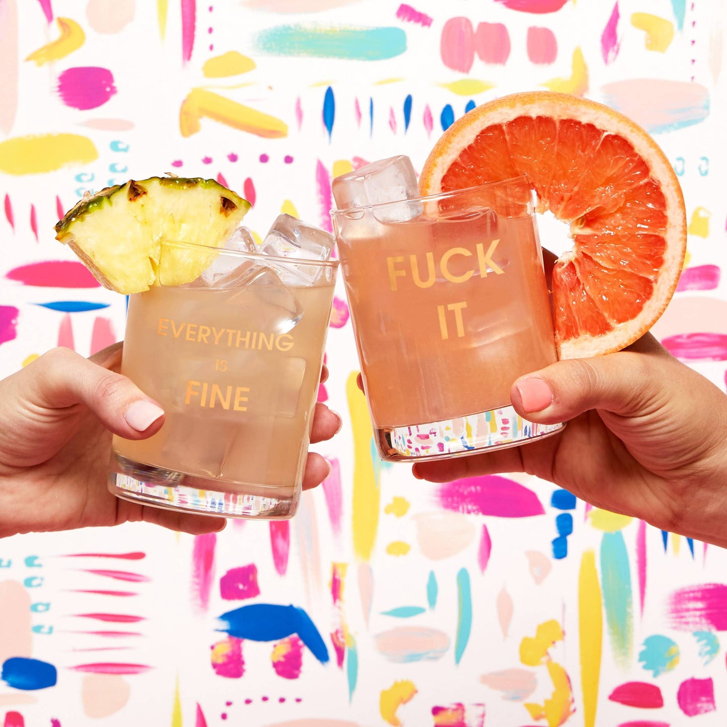 Crush your cocktail in style with our "Everything is fine" gold foil rocks glass. Hand wash only.