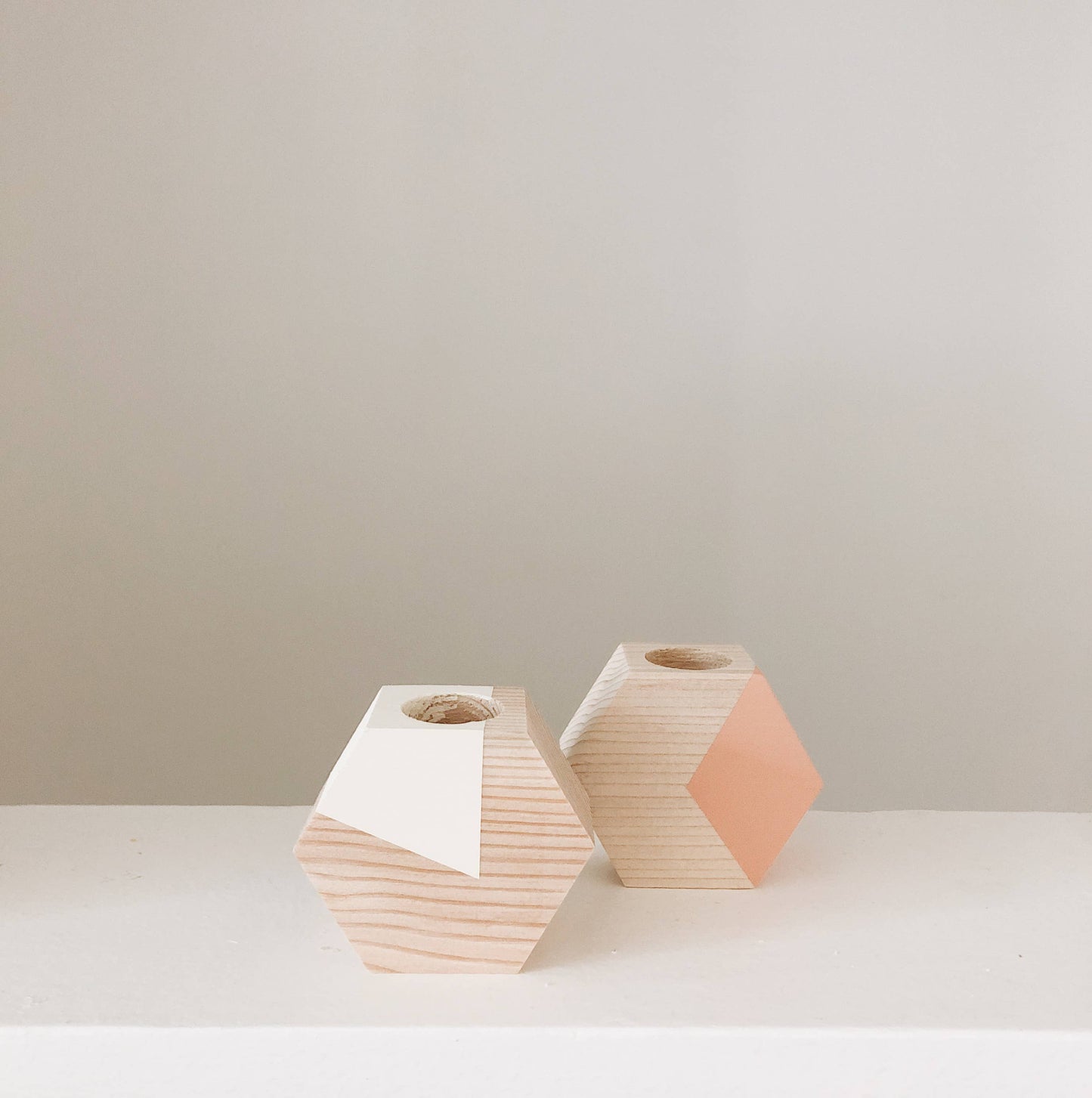 This hexagon air plant holder is made from reclaimed wood and stained in dark walnut or left natural depending on the quality of the wood. It is painted with an accent color on one of its sides. Size is approximately 3" x 2.5" x 1.5".
