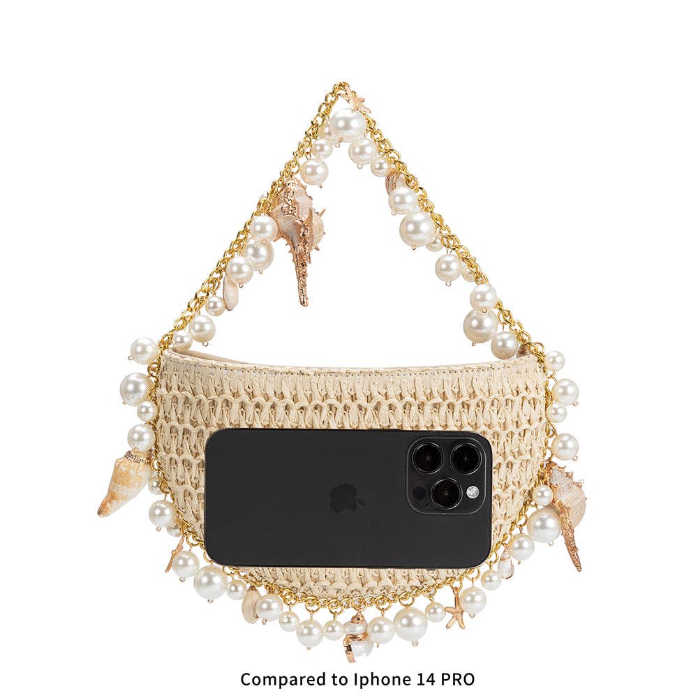 Introducing the Isla top handle bag, the perfect addition to your summer accessories. Made with a hand-woven straw and detailed with pearl and seashells along its silhouette giving Isla an elegant look. This bag includes a spacious interior perfect for your everyday essentials.
