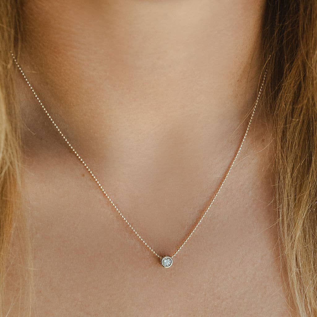 Lluvia brings a playful sparkle with it's sterling silver diamond-cut ball chain and shimmering cubic zirconia charm. Light and graceful, it’s the perfect piece. Wear it layered or on its own.
