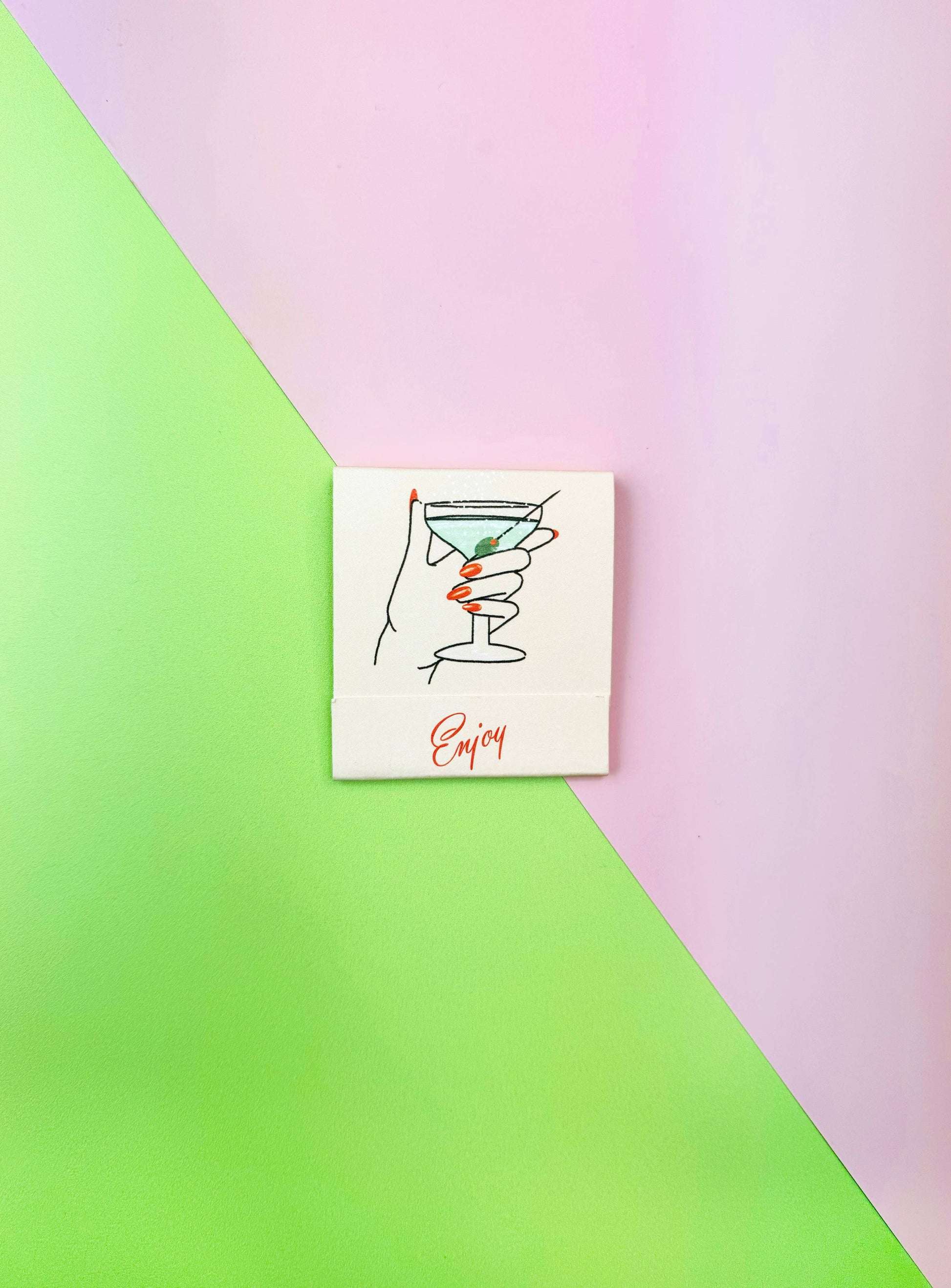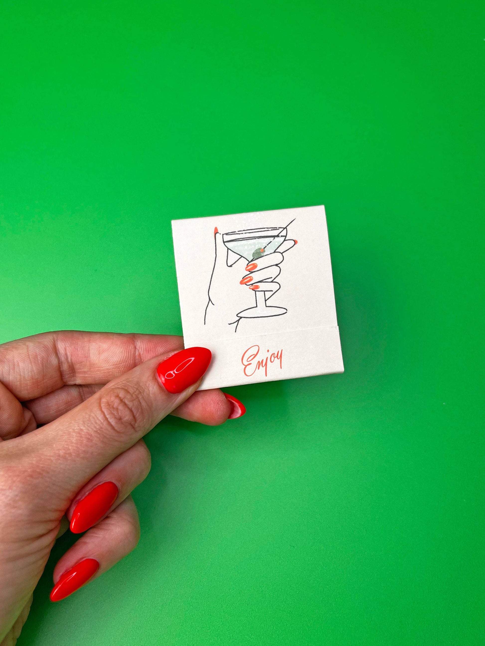 This matchbook features everyone's favorite cocktail- a (dirty) martini! The inside of the matchbook has the recipe for the cocktail and each match features a different ingredient of that cocktail cause we cute like that. Each matchbook has 10 matches, each printed front and back with an ingredient to make the cocktail. Match heads are custom colored to coordinate with the matchbook. Matchbook is 2" x 2.25" Please be careful when using this product and keep away from children! Made in Germany.