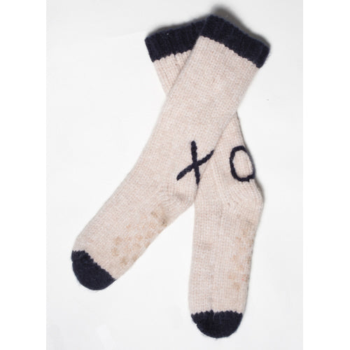 Mersea Sailor Love Knit XO Slipper Socks Oatmeal Oxford Blue