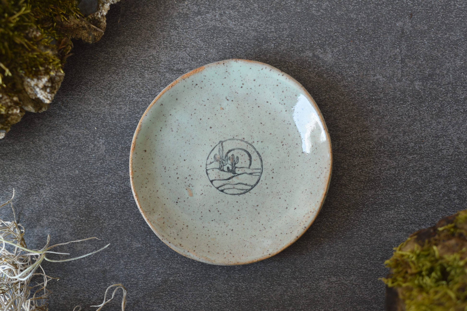 Mini plates are perfect to use for a small catch all for jewelry, key dish, snack plate, smudge stick holder and more. Approx. 4" diameter Food, Microwave & Dishwasher Safe. The image transfer is part of the glaze and will not rub off or wash off; it is permanently fused. Handcrafted in Pennsylvania.