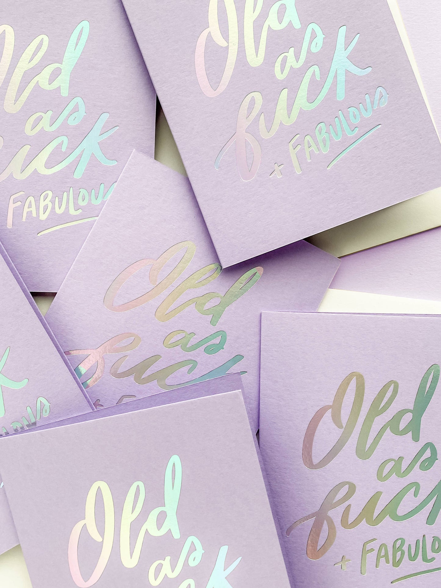 Single, hand illustrated greeting card foil printed on plush stock. Made in the USA. includes: 1 card + 1 envelope size: 4.25 x 5.5" folded packaging: cellophane sleeve interior: blank