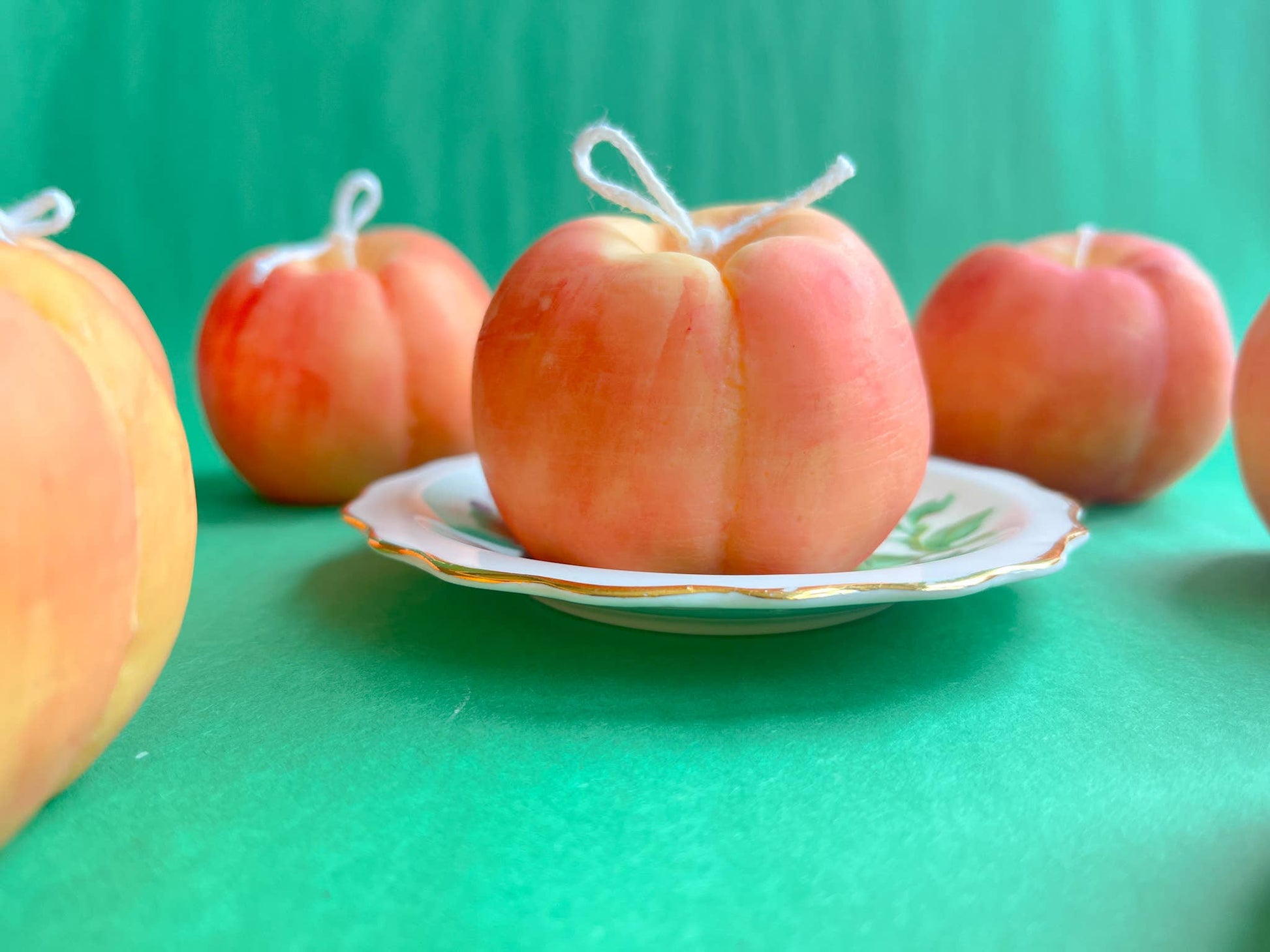 Peach Candles are Hand-poured and Hand-painted by me! Painting for each Peach won't be the same like real-life peaches.