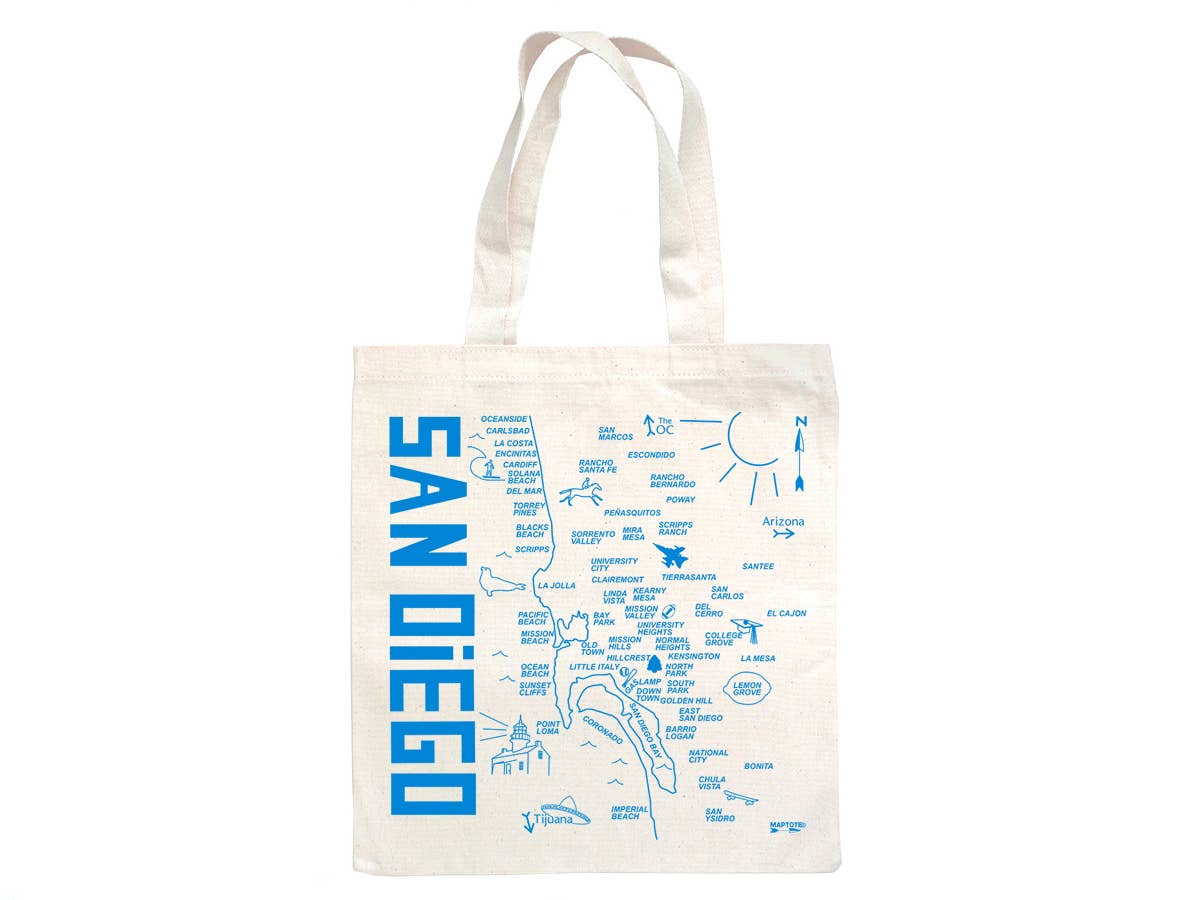 This classic tote bag, featuring San Diego, California, makes the perfect gift or souvenir and is great for toting around groceries and all your daily necessities.