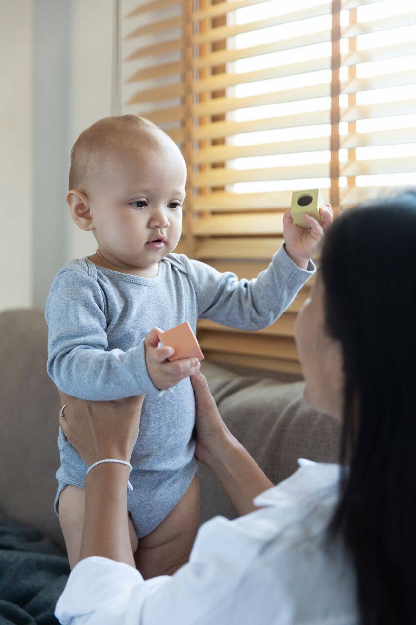 This set of 6 sensory blocks consists of 2 visual, 2 auditory and 2 tactile blocks. This toy stimulates touch, sight and sound while encouraging kinesthetic learning