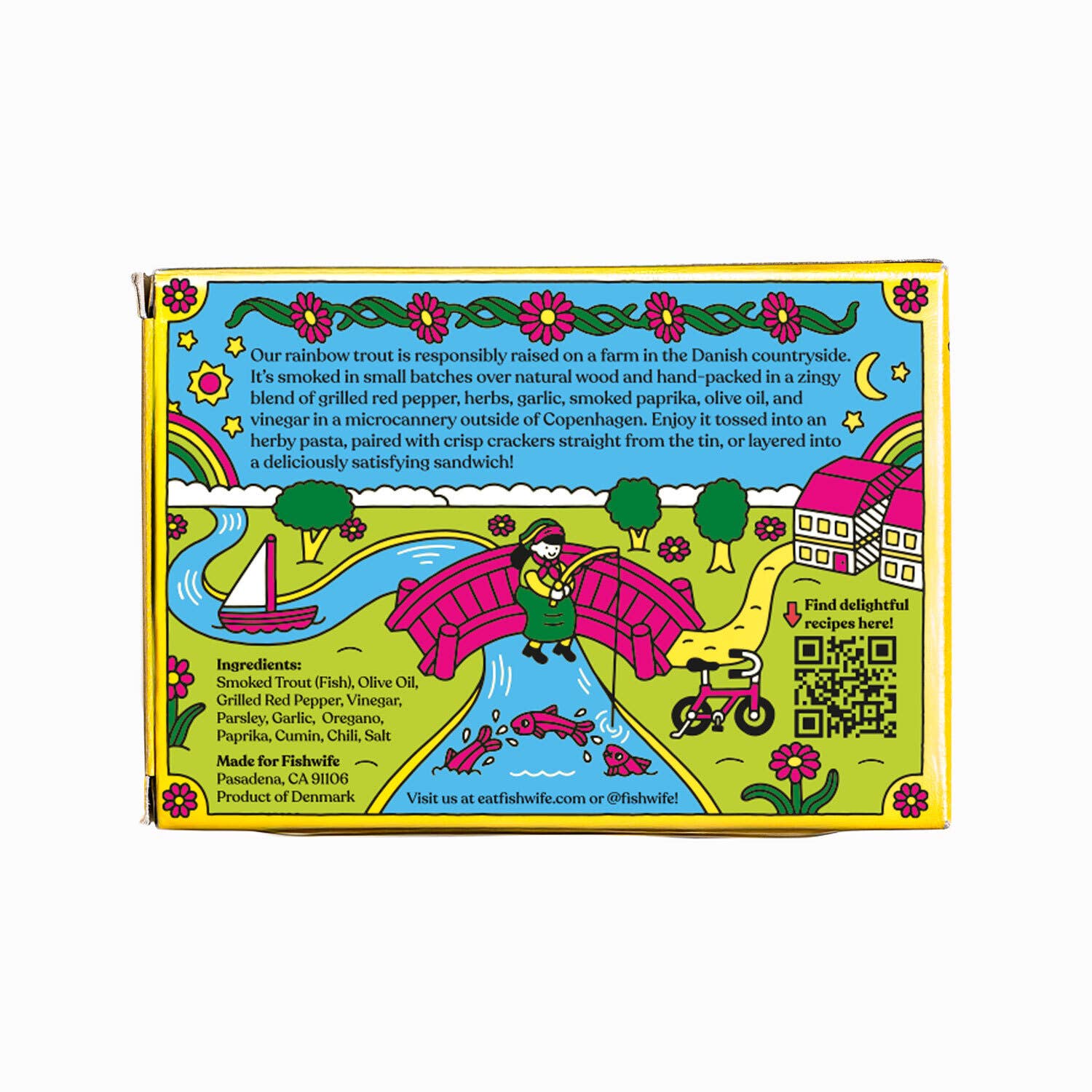 Meet your new pantry crush. Buttery, flaky Smoked Rainbow Trout marinated it in a vibrant red chimichurri. Think tangy grilled red pepper, fresh herbs, savory garlic, and a bright splash of vinegar. The result is a tin that is zippy, herby, and impossible to stop eating.