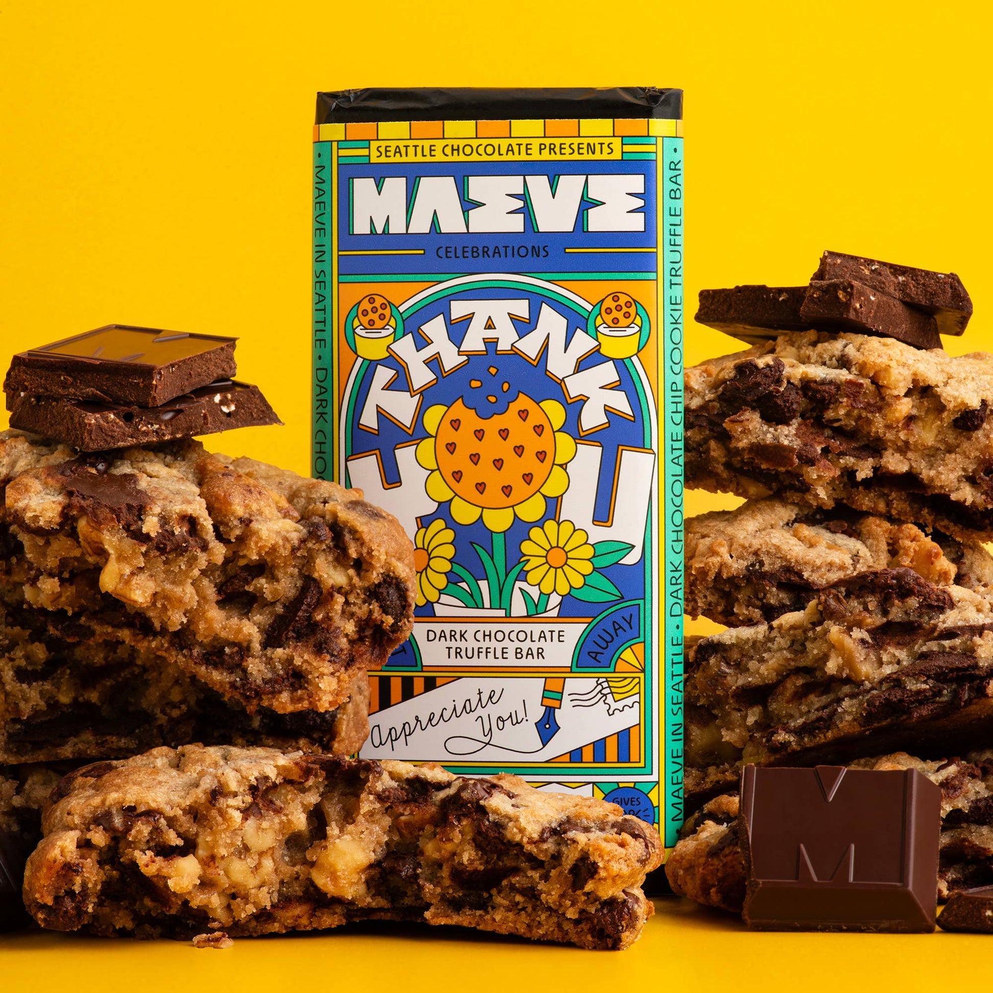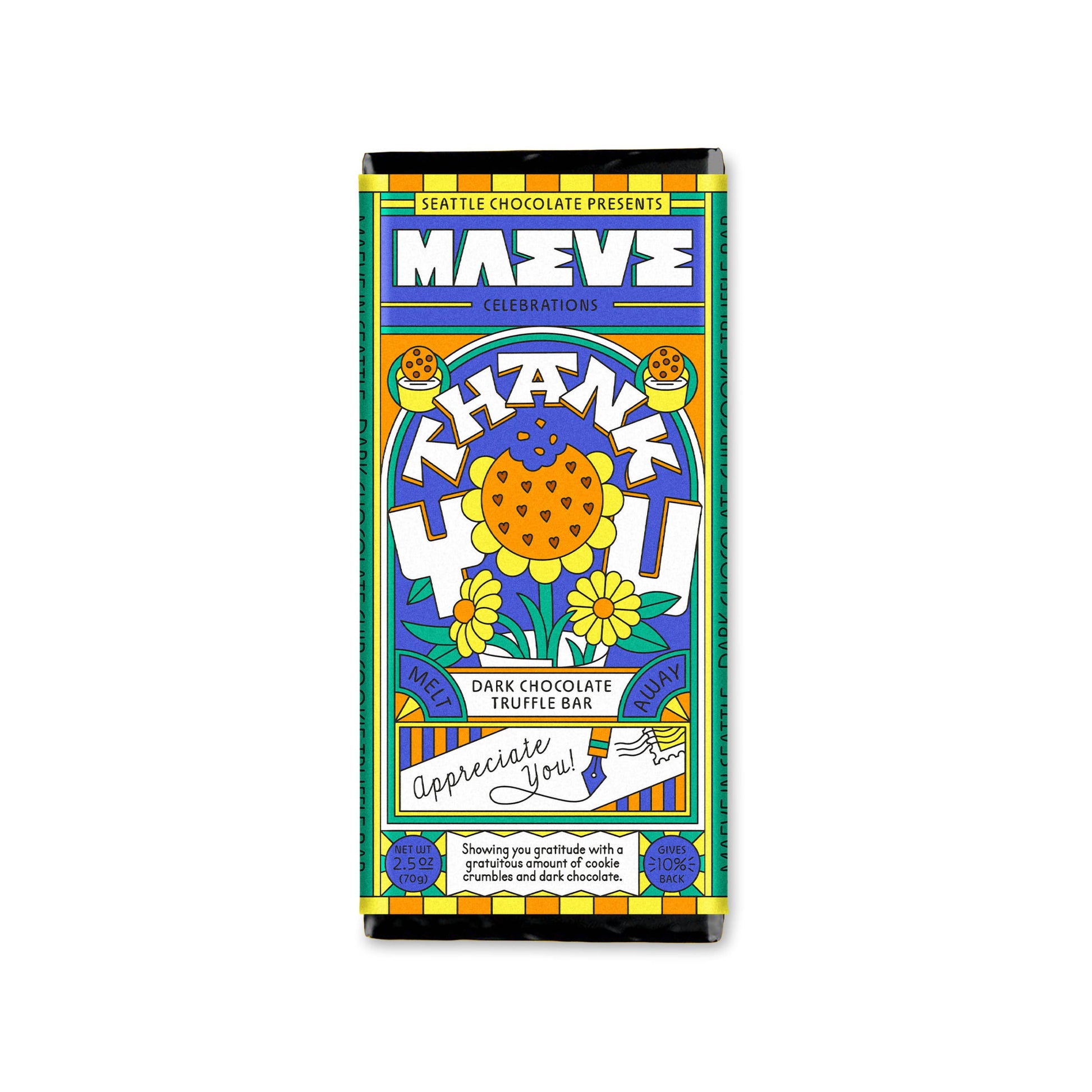 There are lots of ways to show appreciation, but if you ask us, nothing says ‘thank you’ like cookies and chocolate. What can we say, sweet treats are our love language. Maeve’s Thank You truffle bar is decadent dark meltaway chocolate brimming with gratitude AND packed with mini, crunchy chocolate chip cookie pieces. Made with organic chocolate. (2.5oz)