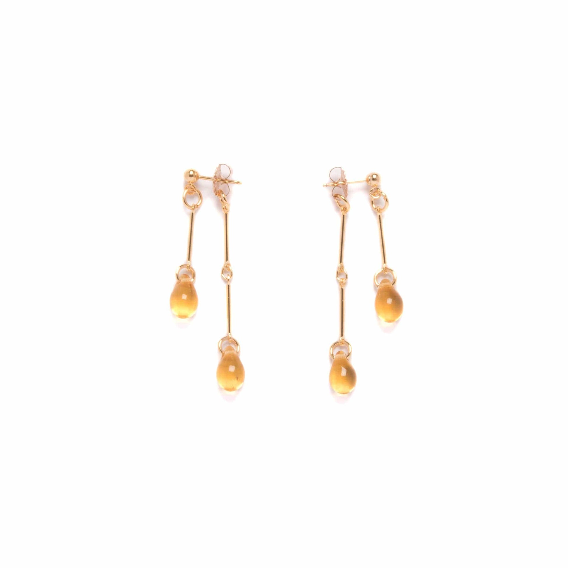* Gold plated bars and vintage topaz glass teardrops