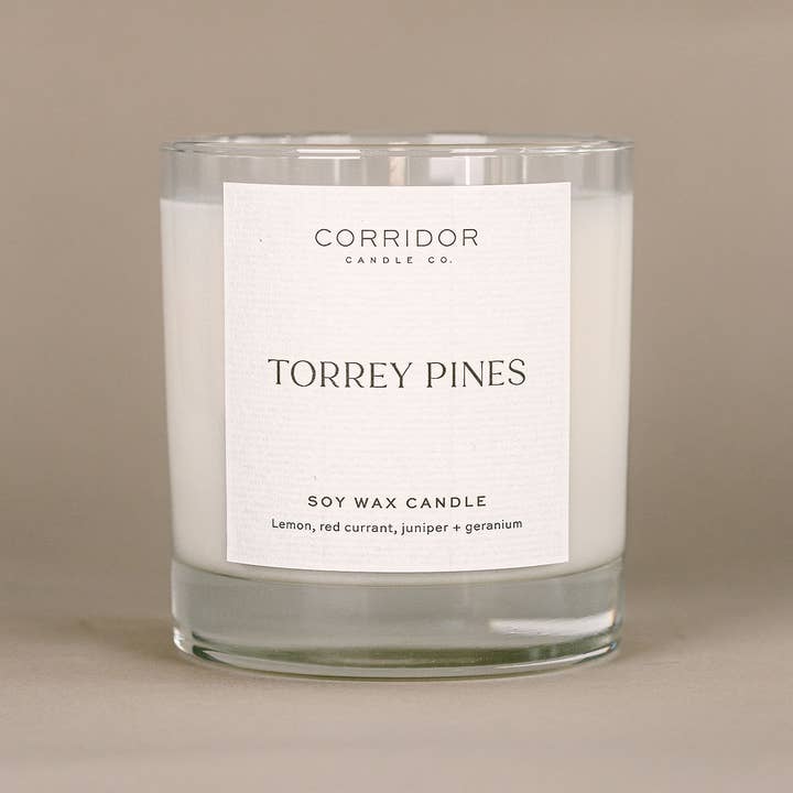 Crafted in a reusable 11 oz. cocktail glass, this candle captures San Diego's vibrant scents. Hand poured with care, it boasts a burn time of 55+ hours and is crafted locally using 100% soy wax and a cotton wick. The delightful Torrey Pines fragrance combines zesty lemon, white currant, juniper, and geranium. Paraben- and phthalate-free for a worry-free experience.